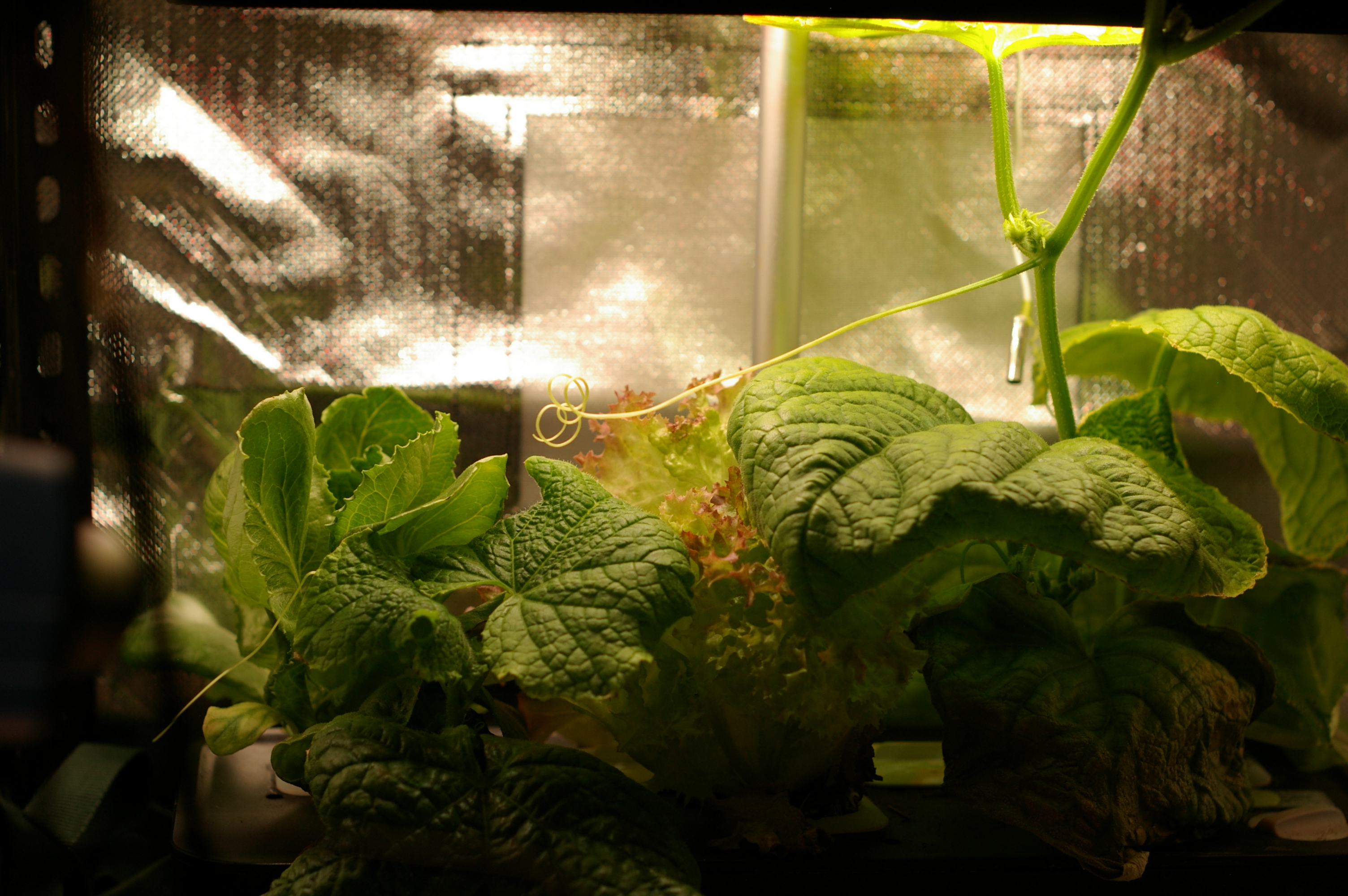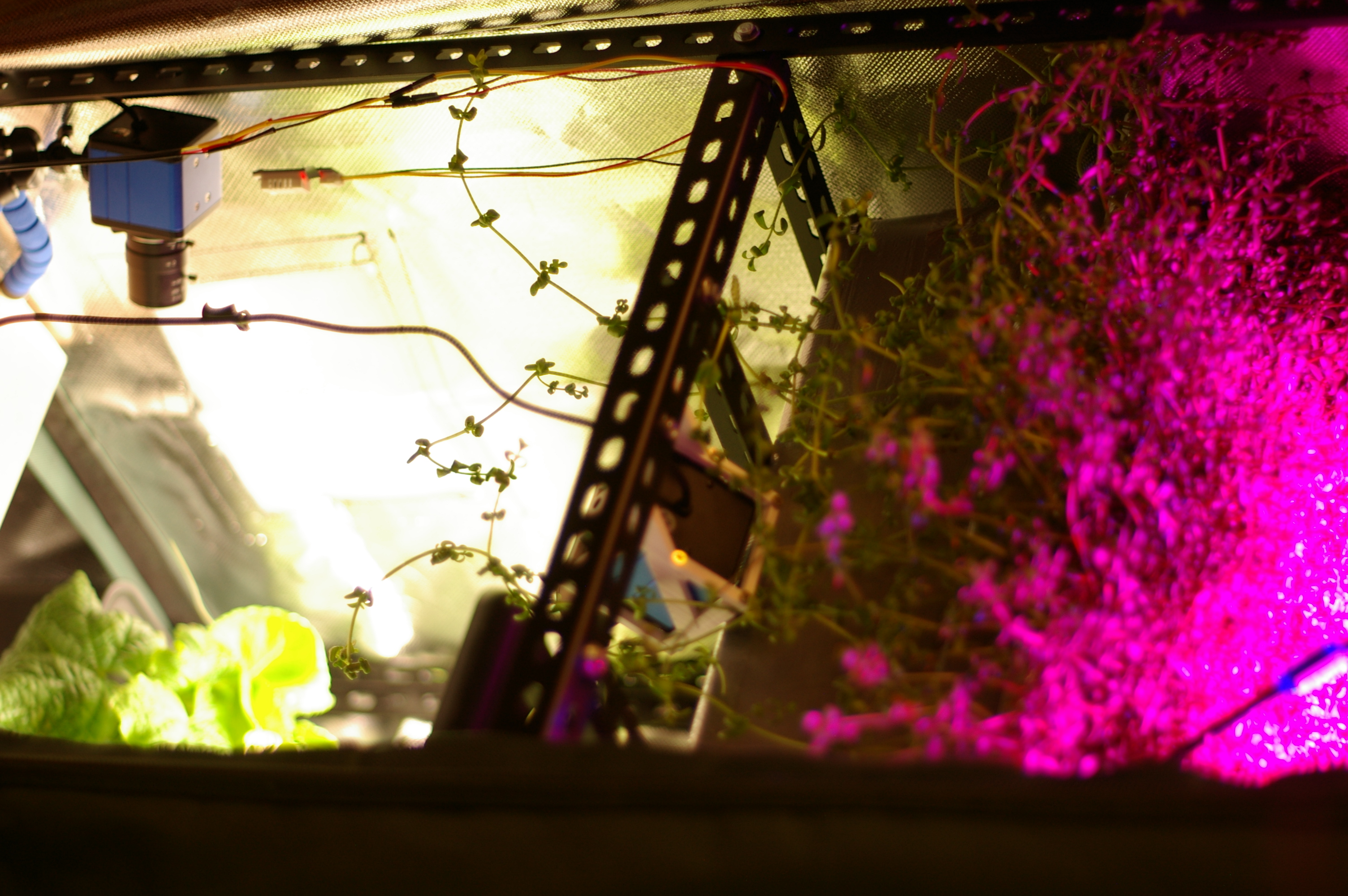 Eksperymentalna komora hydroponiczna do badań wpływu światła, klimatu i składu środowiska na wzrost roślin.